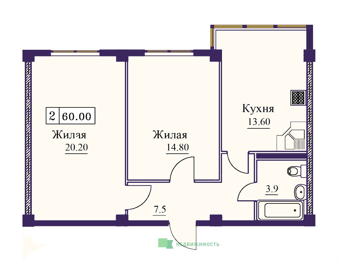 - Предчистовая отделка квартиры готова принять ваш уникальный дизайн интерьера.